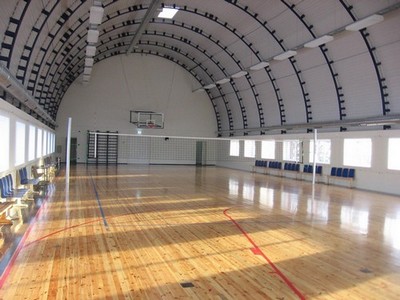 külgedelt veidi kitsam korvpalliplats. Tähistatud on kaks sulgpalliplatsi. Hoones on jõusaal ja kaks